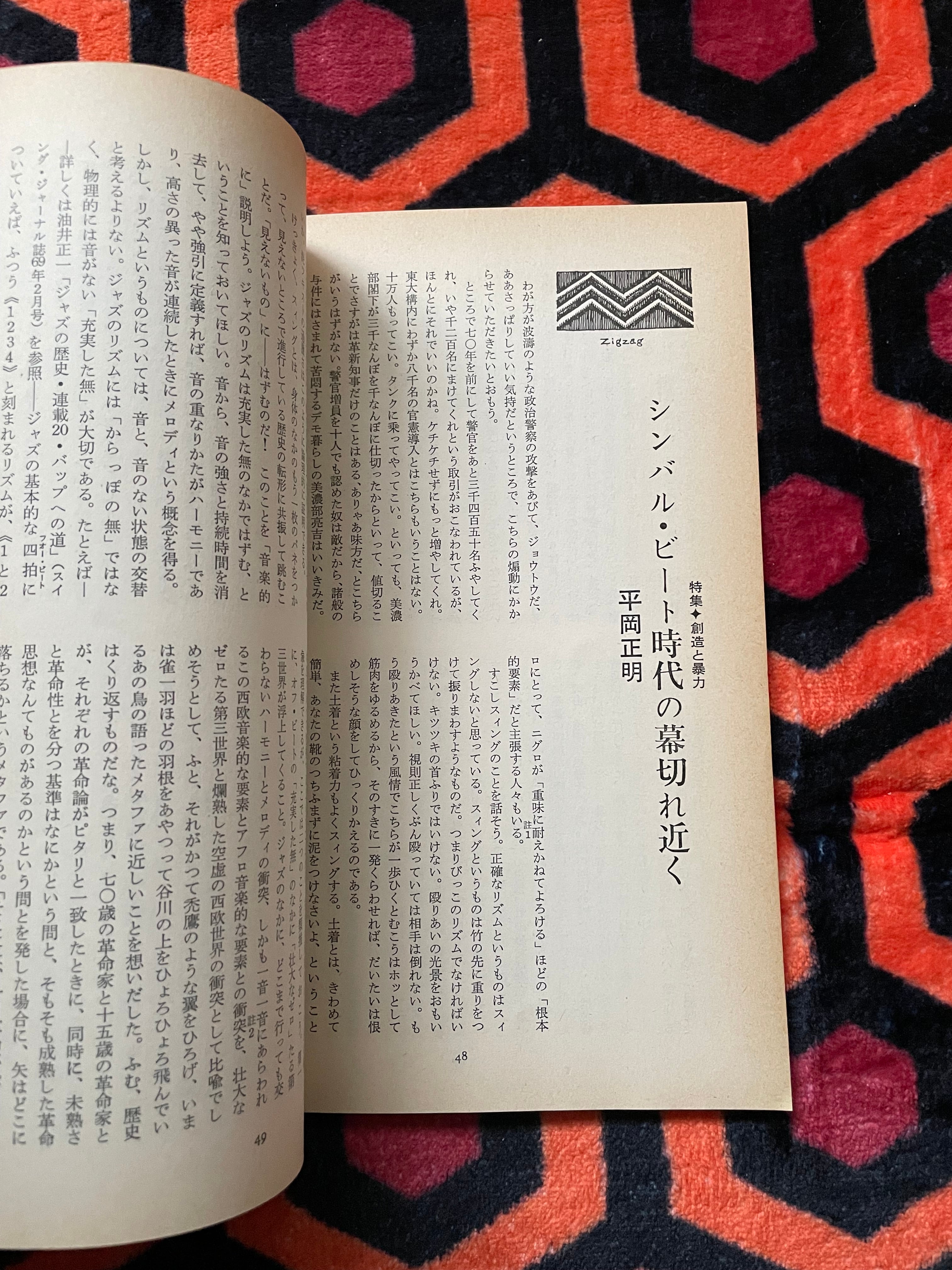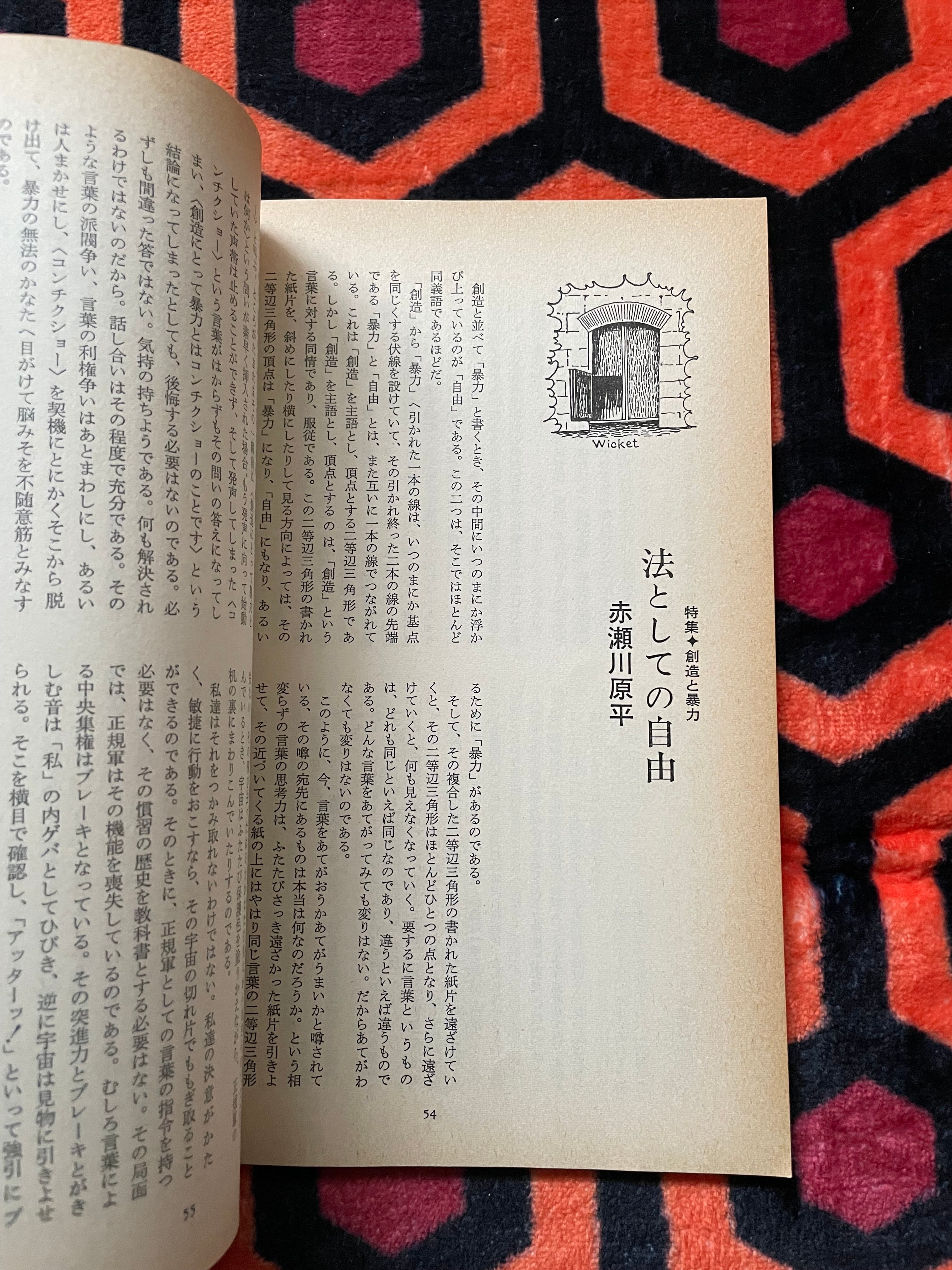 特集は「創造と暴力」として、吉増剛造・平岡正明・赤瀬川原平氏らの評論や唐十郎氏の戯曲「腰巻お仙・振袖火事の巻」、種村季弘・寺山修司氏らの連載を収録。