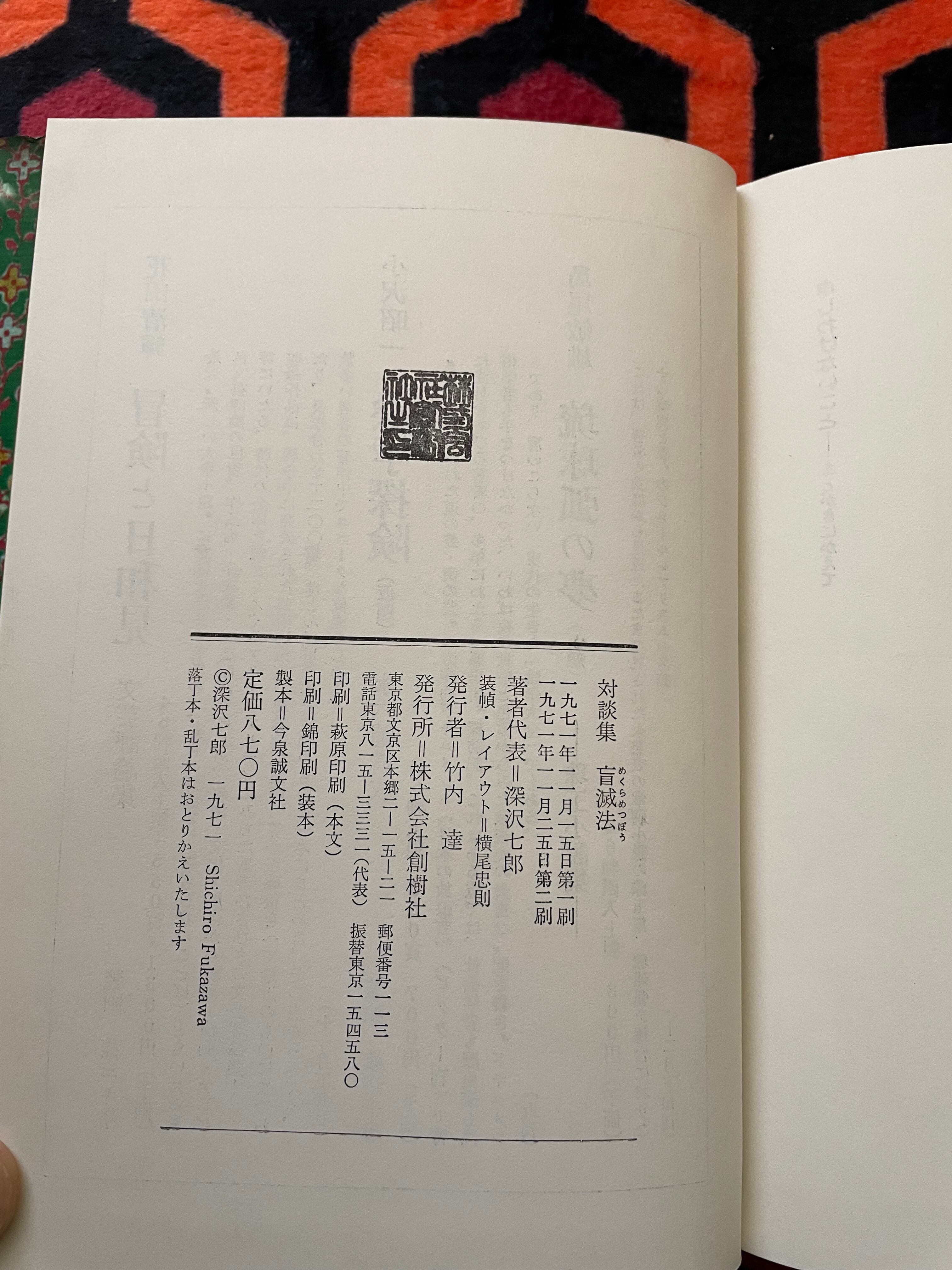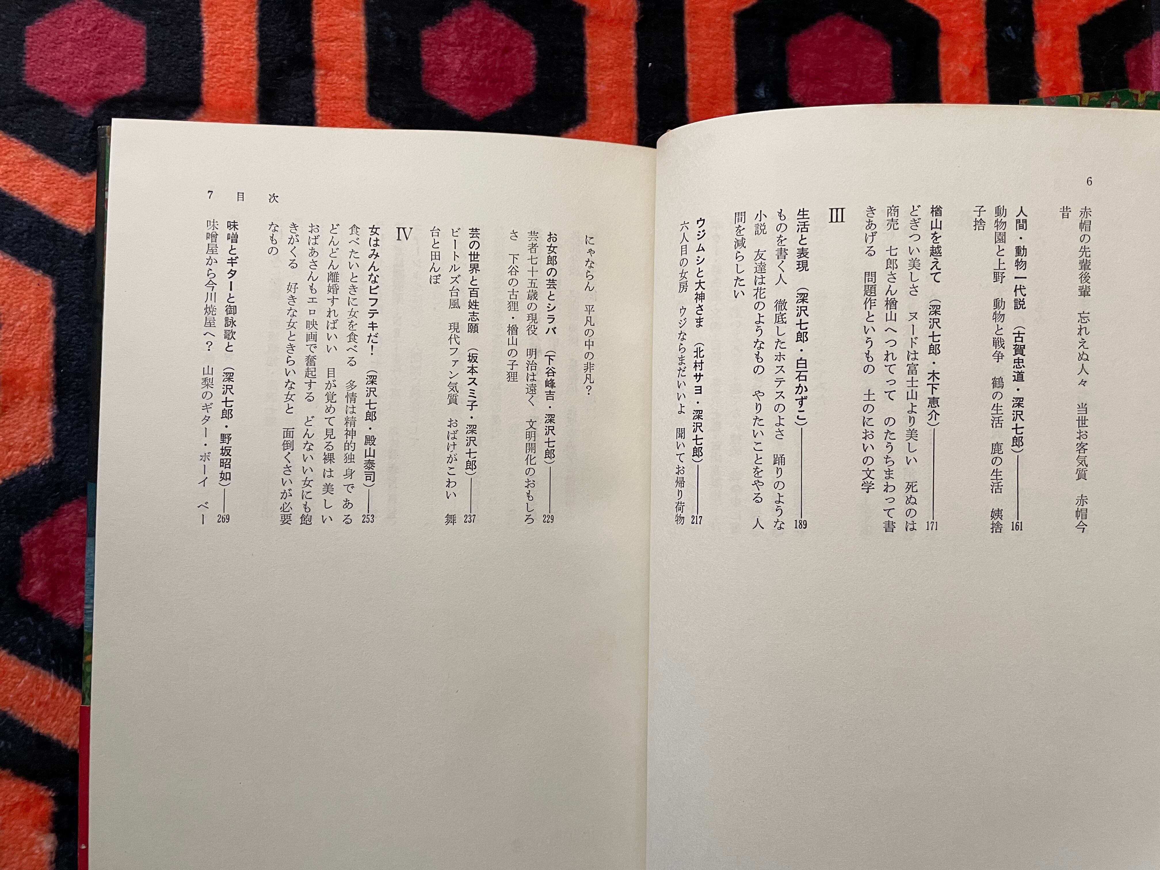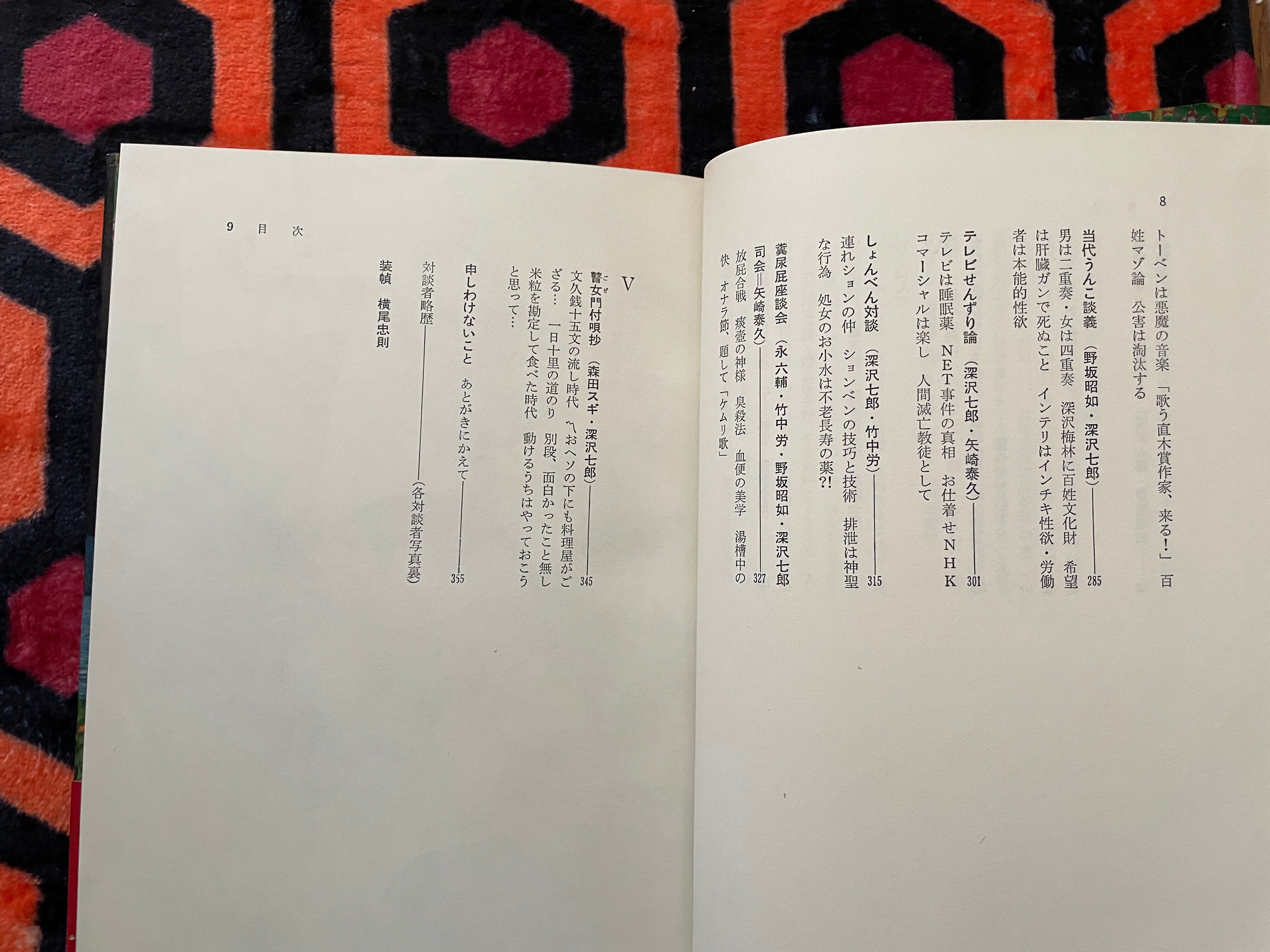 深沢七郎氏が作家や評論家など様々な人との20編の対談を収録した本書。対談者は井伏鱒二、大江健三郎、木山捷平氏ら多数。