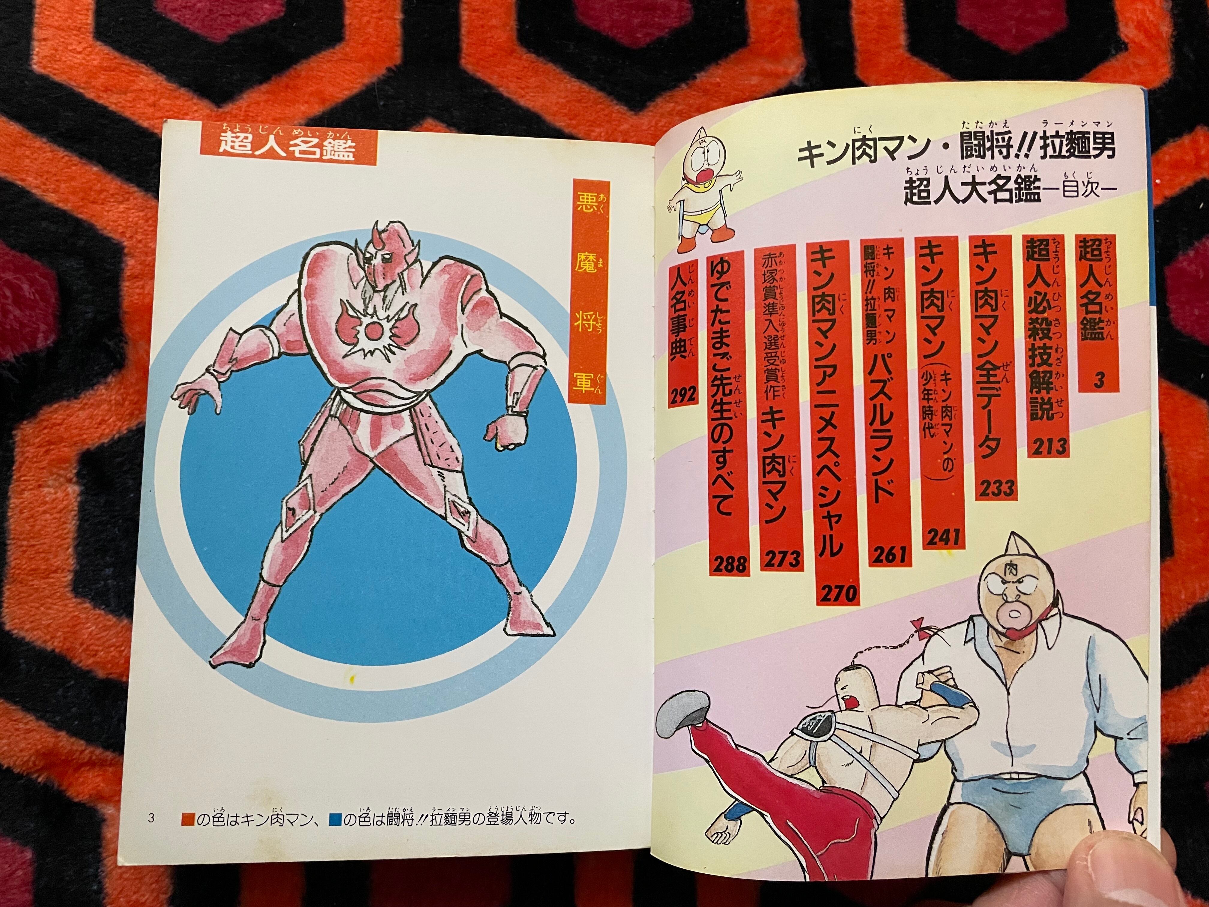 「キン肉マン」「闘将!拉麺男」に出てくる超人の中からゆでたまご先生が選んだ105人を中心に、超人の必殺技、キン肉マン全データや赤塚賞に準入選したデビュー作など収録。