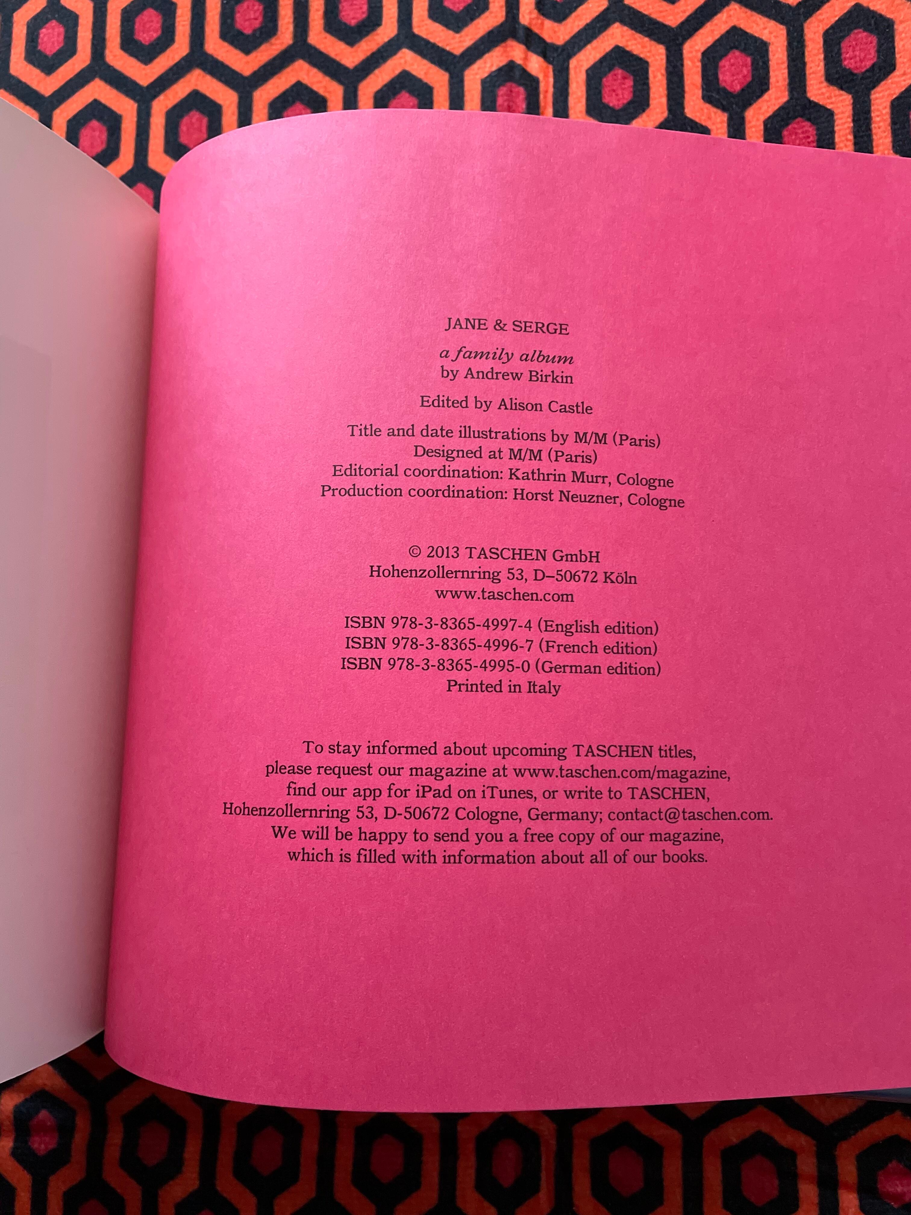 Jane Birkin(ジェーン・バーキン)とSergeGainsbourg(セルジュ・ゲンスブール)を撮影したファミリーアルバムの本書。ジェーンの兄による写真を中心に構成され、パリのデザインユニットM/M(paris)の手掛けたエディトリアルデザインに加え、コンタクトシート、ポスター、プリント写真5枚、ステッカー、刺繍ワッペン(アイロン接着)、ミニリーフレット付きの豪華版。